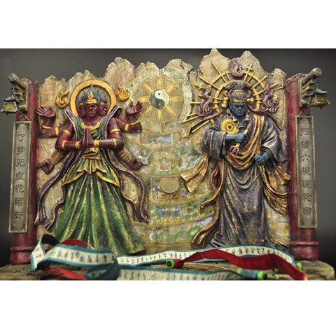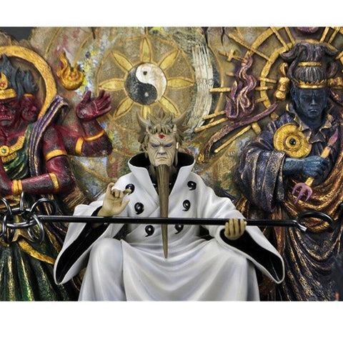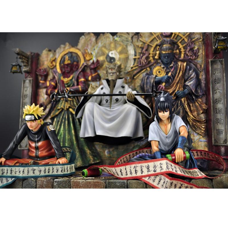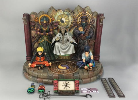 Sculpture mettant en scène Naruto Uzumaki et son plus grand rival Sasuke Uchiwa avec derrière L’ermite Rikudô ( Hagoromo Ôtsutsuki ) 45 cm