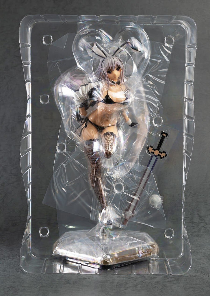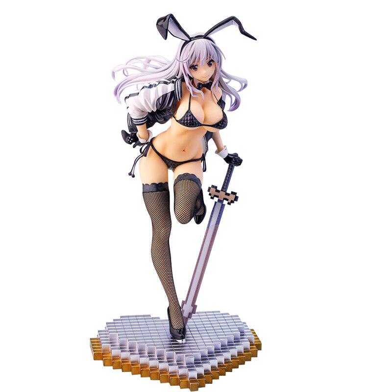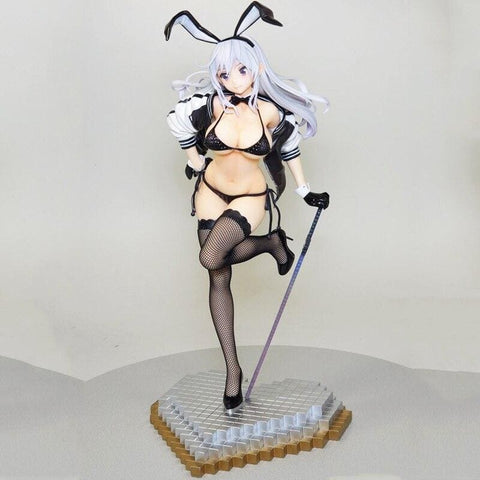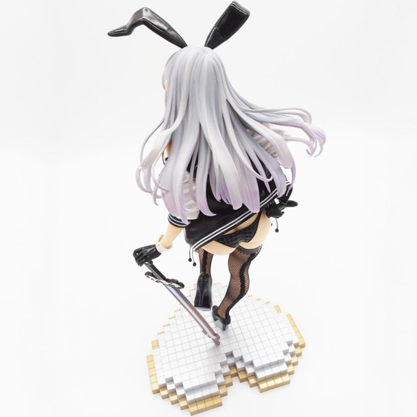 Adorable statuette érotique Skytube de 28 cm de Usada Yu Saitom avec de gros seins en tenue sexy noire oreilles de lapin debout sur un coeur