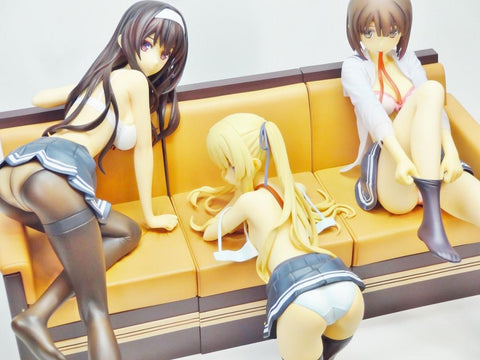 Splendide statuette érotique de 23 cm de Misaki Kurehito avec de gros seins en soutien gorge et en jupe collant sexy