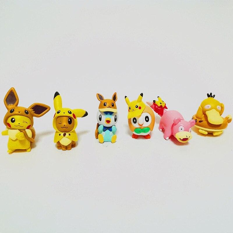 • Plaisant lot de 6 statuettes Pokémon composé de Pikachu avec une capuche Evoli, Evoli en cosplay Pikachu, Tiplouf avec une casquette Evoli, Brindibou avec une casquette Pikachu, Ramoloss avec un ruban rouge Pikachu sur la queue et un Psykokwak avec une bouée Evoli autour de lui
