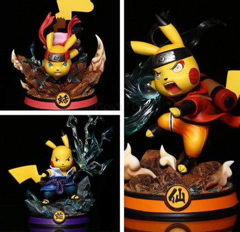Magnifique statuette Pokémon de 17 cm de Pikachu sur des rochers faisant un Chindori en cosplay de Sasuke Uchiwa