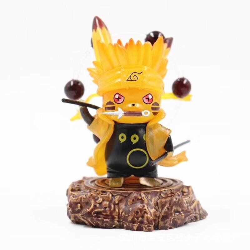 Ravissante statuette tirée du jeu Pokémon mesurant 12 cm de Pikachu en cosplay de Naruto Uzumaki en mode Kyubi renard à 9 queues